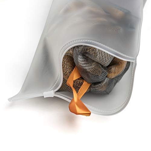 Luxury Mesh Mens Shower Loofah. Travel Loofah Puff Gift Set. Shower Pouf with 3 Strong Loofah Suction Cup Hooks and Waterproof Case Bag. Top Rated Premium Quality Luffa - Multi-Colored