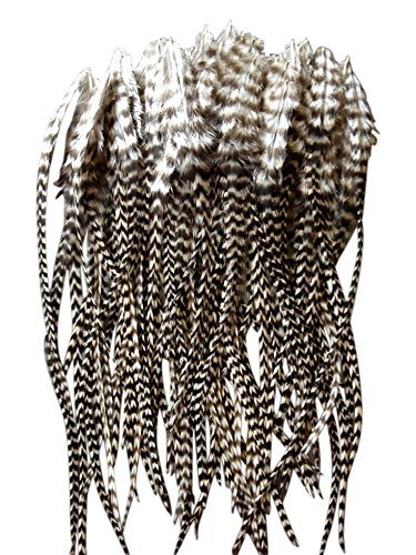 100 Real Rooster Feathers, Black and white striped grizzly Fluff, Hair Extensions or crafts, 5-7 inches