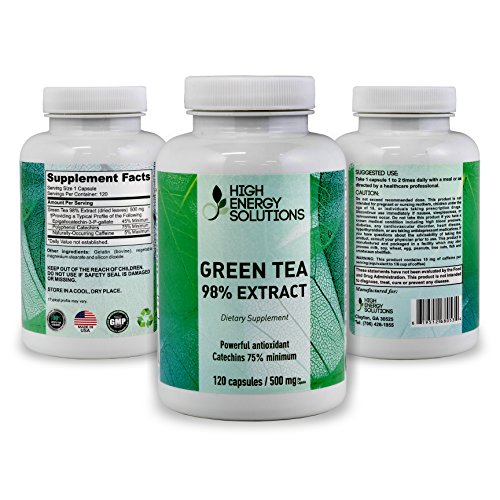 HIGH ENERGY SOLUTIONS Green Tea Extract Supplement with EGCG for Weight Loss - Energy - Metabolism Boost - Antioxidant Promotes Healthy Heart 120 Vegetable Capsules for Ultimate Bio-Availability