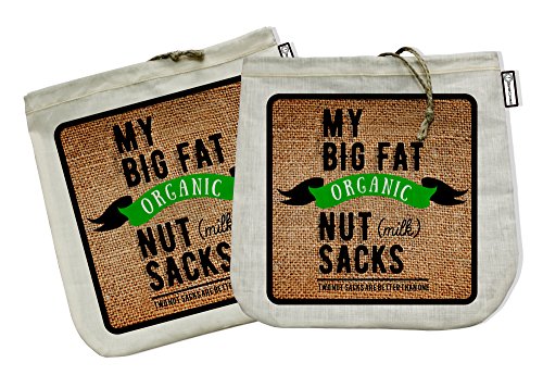 My Big Fat Organic Nut (milk) Sacks. Set of 2 Bags (12"x12") Commercial Quality Organic Cotton & Hemp Reusable Almond Milk Bag Strainers. Juicing Sprouting Jelly Cheesecloth Coffee Press Tea Sieve
