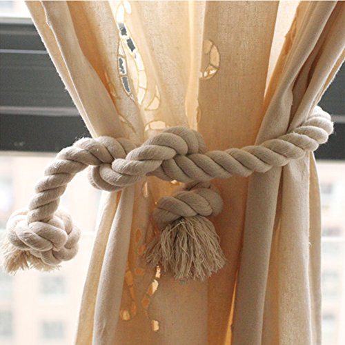 A.B Crew Pair of Vintage Style 31.5" Natural Cotton Cord Curtain Rope Drapery Tieback