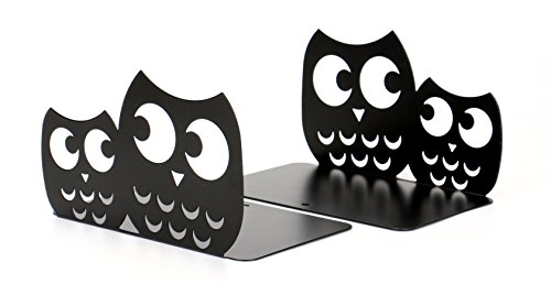 Fasmov Owls Nonskid Bookends Cute Bookends Art Bookends,1 Pair (Black)