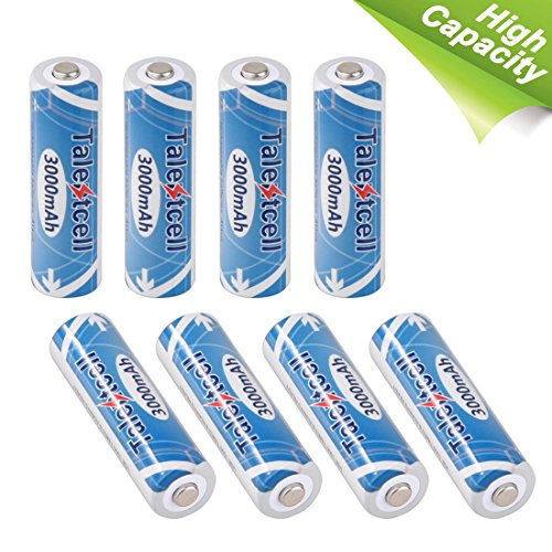 TalentCell High Capacity 3000mAh 1.2V AA Ni-MH Rechargeable Batteries, 8-Pack