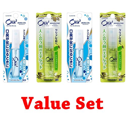 4 Bottle of Sunstar aura 2 Breath Fine Mouth Spray [citrus mint 6ml×2 & cool mint 6ml × 2 - Imported By SAIKO JAPAN]