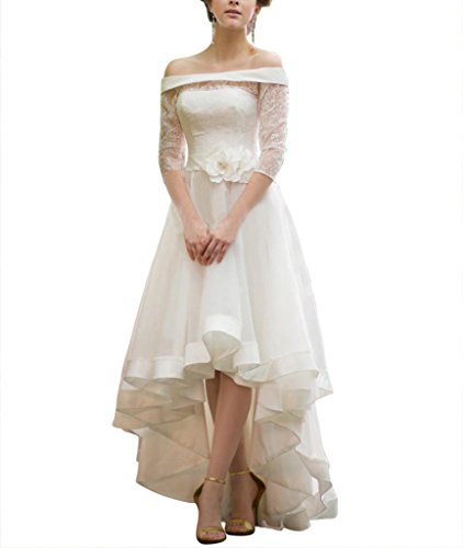 Bettertime Women's 3/4 Sleeves Hi-Lo Lace Wedding Dresses Bridal Gowns
