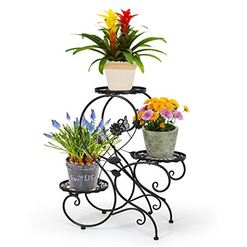 HLC 3-tier Classic Plant Stand with Modern "S" Design (Black)