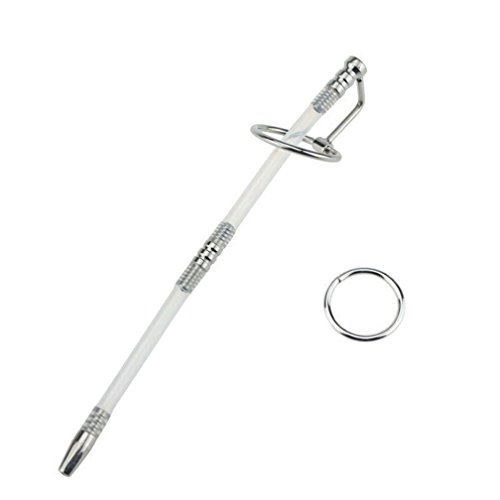 FST Long Hollow Flexible SILICONE Sound Urethral Penis Plug with 2 Stainless Steel Rings(Sliver)