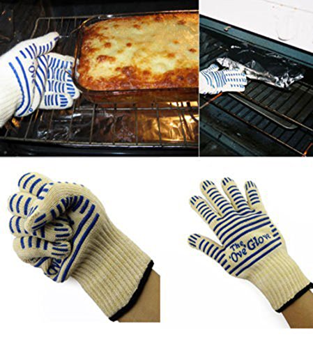 Itinlu 1x Kitchen Microwave Oven Glove Heat Proof Resistant 540 F Cooking Tools for Right Left Hand Protective Universal White & Blue Color