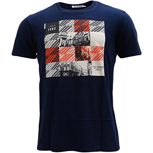 Ben Sherman Men's London Squares Graphic T-Shirt, Navy Blazer, Large