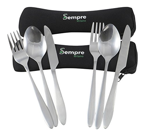 3 Piece Stainless Steel Utensils to Go Set (Knife Fork Spoon) Travel Camping Cutlery with Neoprene Case, Portable Reusable Lunch Box Flatware (2 Pack) by Sempre