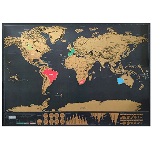 World Map for Scratching! Large Black & Gold Deluxe Edition Poster 32.5 inches X 23.4 inches