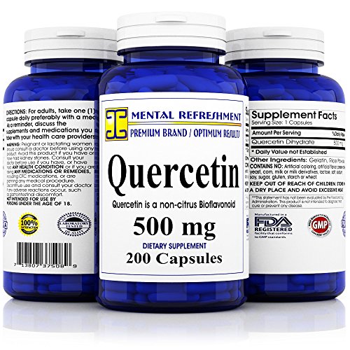 Mental Refreshment: Quercetin 500mg 200 Capsules (1 Bottle)