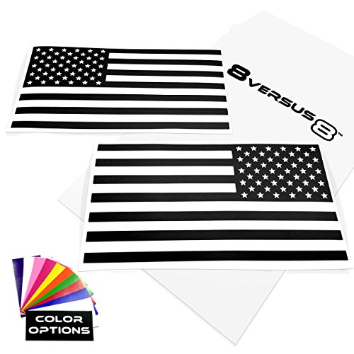 8 Versus 8 USA American Flag Vinyl Decal Sticker - Quantity: 2 - Indoors or Outdoors - Cars, Laptops, Windows, etc. (6.5" Wide x 3.4" Tall, Matte Black (not Glossy))