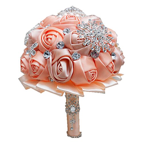 High Quality Romantic Diamond Rose Artificial Wedding Bouquet of Flower, Western Style Wedding Bride Holding Flower Champagne
