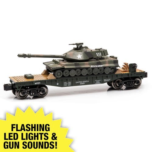 O Gauge US Military Flatcar with US Army Tank with Working Lights and Sounds