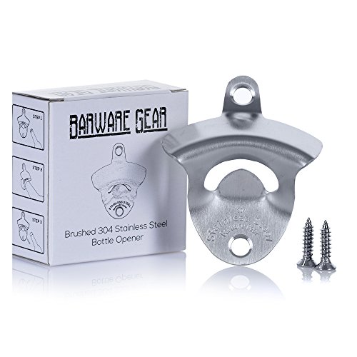 Barware Gear: Brushed Stainless Steel Wall Mounted Bottle Opener with Free SS Mounting Screws.Pop the cap open on your Soda and Beer Bottle