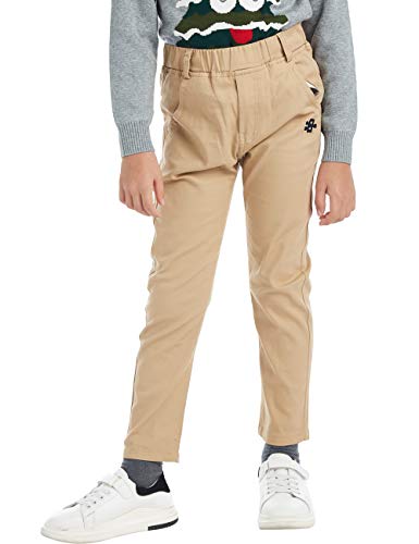 BYCR Boys' Solid Color Elastic Chino Cotton Pant for Kids Size 4-16
