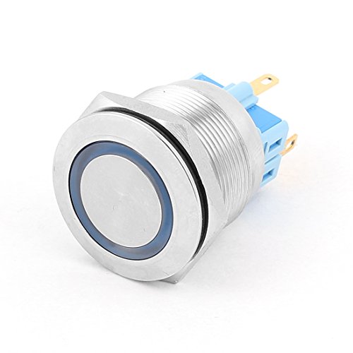 uxcell DC 12V Blue Light 25mm Mounted Thread Latching Push Button Switch