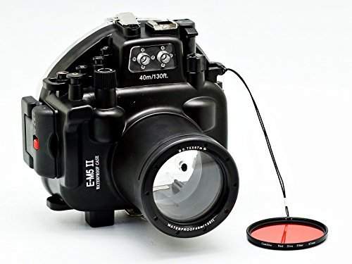 CamDive 40M/130ft Waterproof Underwater Camera Housing Diving Case for Olympus E-M5 II Can Be used with 12-50mm Lens & Comes with Red Underwater Filter