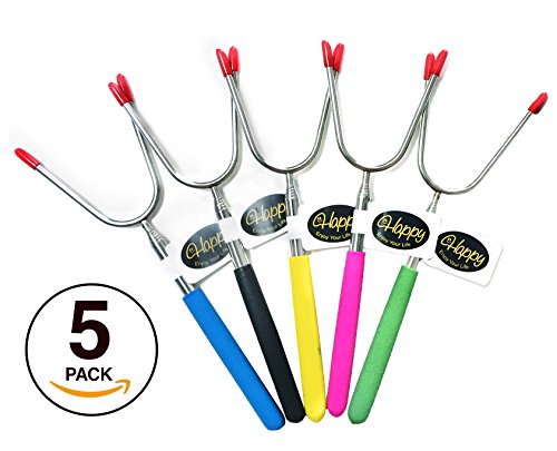 Marshmallow roasting sticks from HappySmile Telescoping 5 Smores Skewers 34 Inch length Hot Dog Fork Barbecue set Durable Easiest to Clean and Storage!