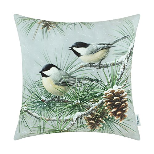 CaliTime Throw Pillow Cover 18 X 18 Inches, Wild Chickadees, Pinecones Tree in Winter