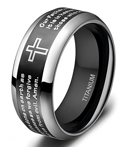 SOMEN TUNGSTEN Men's Titanium Ring 8mm Black Lords Prayer Ring with Christian Scripture Cross Praying Size 5.5-14.5
