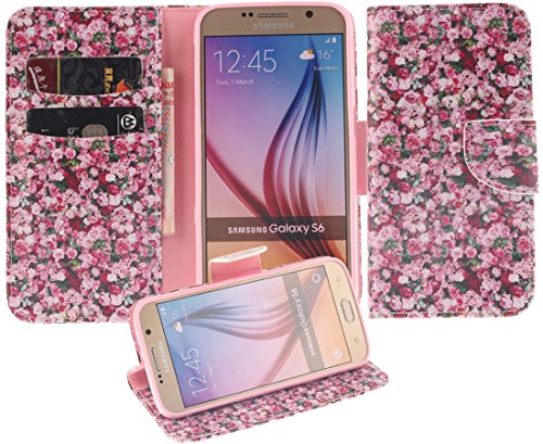 Eloiro Samsung Galaxy S6 Case, Ultra Slim Card Holder Leather Wallet Case Protective Soft Detachable Magnetic Shell Folio Flip [Stand Book Type] Cover for Samsung S6 - Watercolor Painting Flower