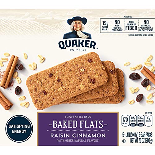 Quaker Baked Flats, Raisin Cinnamon, 5-3 Bar Packs