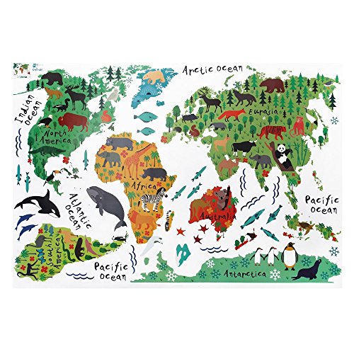 Cute Animal World Map Wall Sticker Kids Room Removable Wall Art Decor