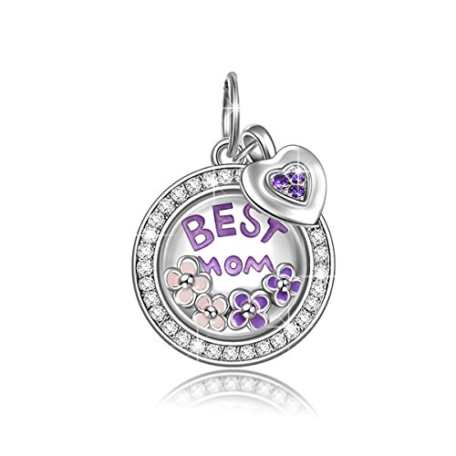 NinaQueen Best Mom 925 Sterling Silver Purple Locket Charms Fit pandöra Charms for Bracelet Necklace Jewelry Christmas Gifts For Women Birthday Anniversary Gifts For Her Teen Girls Wife Mom Daughter