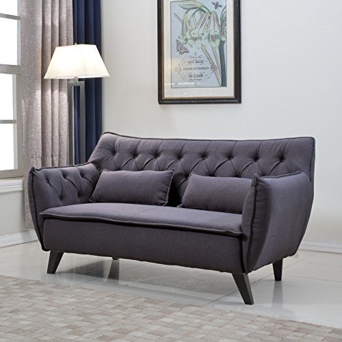 Divano Roma Furniture Mid Century Linen Fabric Loveseat, Dark Grey