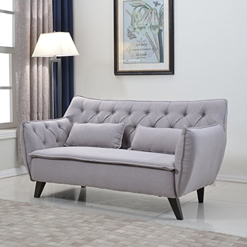 Divano Roma Furniture Mid Century Linen Fabric Loveseat, Light Grey