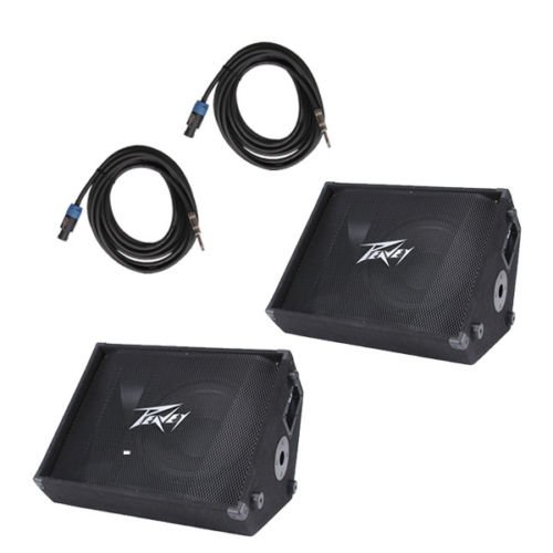 Peavey PV12M PV 12M 12" 2-Way Passive Floor Stage Monitor Speaker PAIR w/ Cables