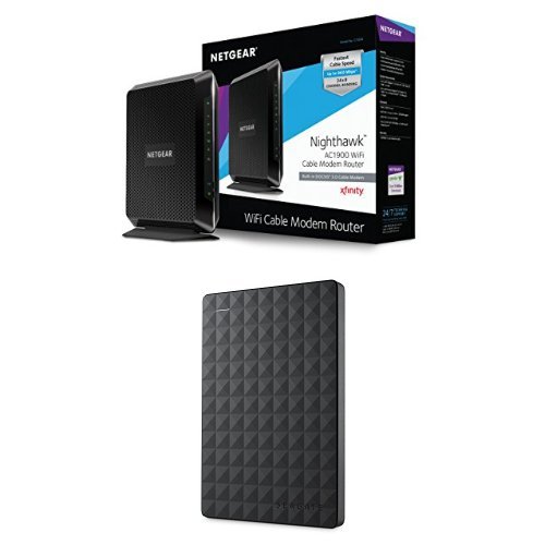 NETGEAR Nighthawk AC1900 Wi-Fi DOCSIS 3.0 Cable Modem Router (C7000-100NAS) & Seagate Expansion 1TB Portable External Hard Drive USB 3.0 (STEA1000400) Bundle