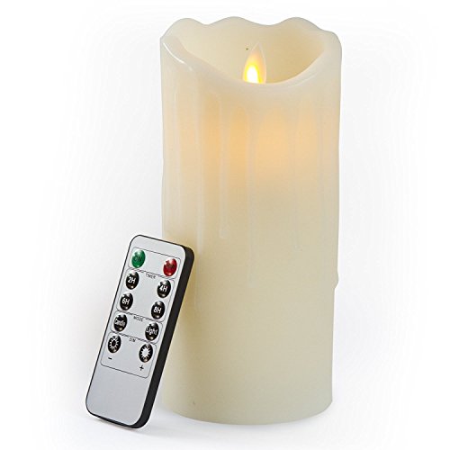 Gideon 7 Inch Flameless LED Candle - Dripping Style - Real Wax & Real Flickering Candle Motion - with Multi-Function Remote (On/Off, Timer, Dimmer) - Vanilla Scented, Ivory