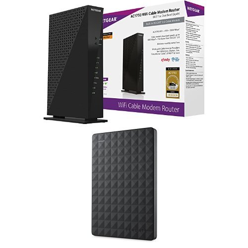 NETGEAR AC1750 Wi-Fi DOCSIS 3.0 Cable Modem Router (C6300) & Seagate Expansion 1TB Portable External Hard Drive USB 3.0 (STEA1000400)