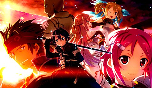 Sword art online collage mat #16 TCG playmat, gamemat 24" wide 14" tall for trading card game smooth cloth surface rubber base