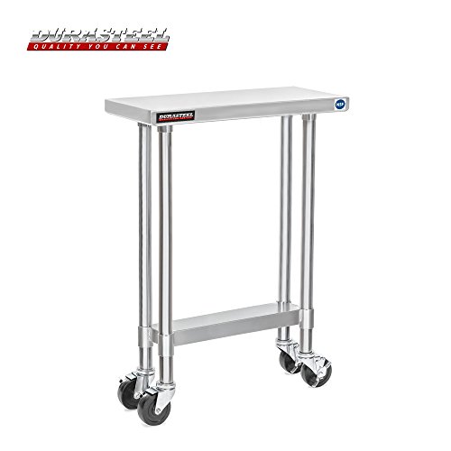DuraSteel Stainless Steel Work Table 30" x 12" x 34" Height w/ 4 Caster Wheels - Food Prep Commercial Grade Worktable - NSF Certified - Good For Restaurant, Business, Warehouse, Home, Kitchen, Garage