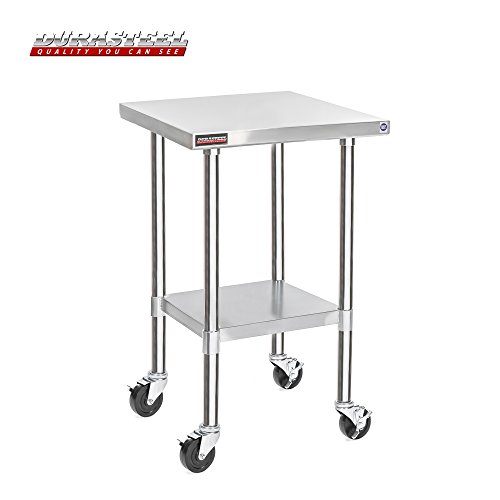 DuraSteel Stainless Steel Work Table 30" x 18" x 34" Height w/ 4 Caster Wheels - Food Prep Commercial Grade Worktable - NSF Certified - Good For Restaurant, Business, Warehouse, Home, Kitchen, Garage