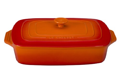 Le Creuset Stoneware Covered Rectangular Casserole, 12.5 by 8.5-Inch, Hibiscus