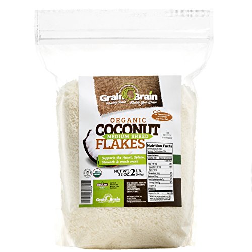 Grain Brain Organic Medium Shredded Coconut (2 lb) Unsweetened, Sulfate free, Gluten Free