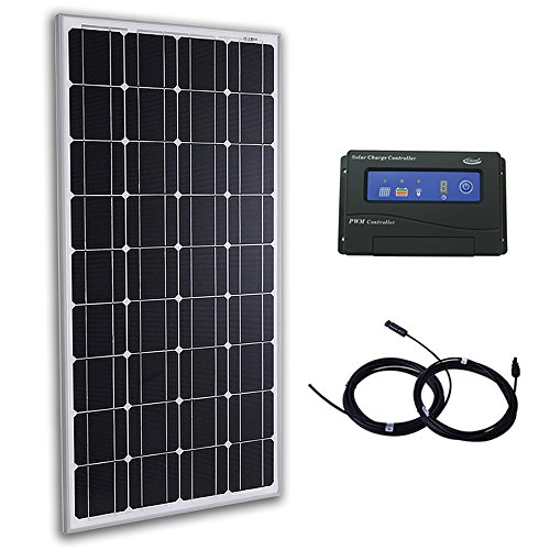 Komaes 100 Watts 12 Volts Monocrystalline Solar Bundle Kit with 20A PWM Charge Controller + 20ft MC4 Connectors