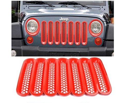 Generic Red Front Grill Mesh Grille Insert Kit for Jeep Wrangler Jk Sahara Sport Rubicon Unlimited X X-s Mountain Islander Wilys Wheeler Polar Freedom 2007-2016