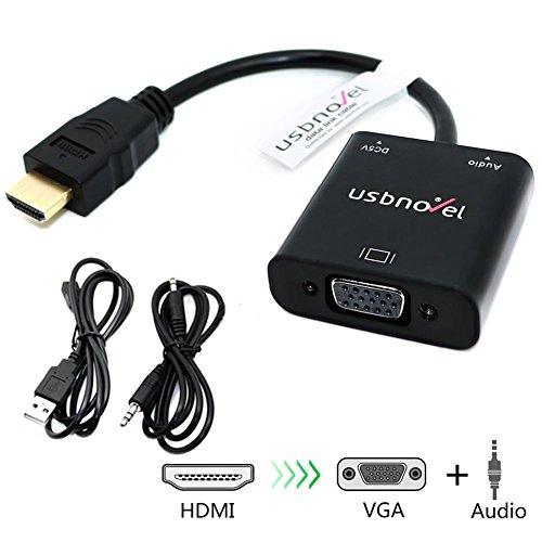 HDMI to VGA Adapter 1080P with Audio Port, Gold-Plated HDMI to VGA Converter with 3.5mm Audio Cable and Micro USB Power for PC HD DVD, Black