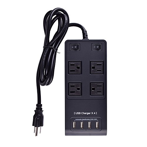 GeckoneĀ® 4-Outlet Surge Protector Power Strip (AC95V-240V, 2500W Max,3500J) 5.5-foot Cord with 4 USB Charging Station