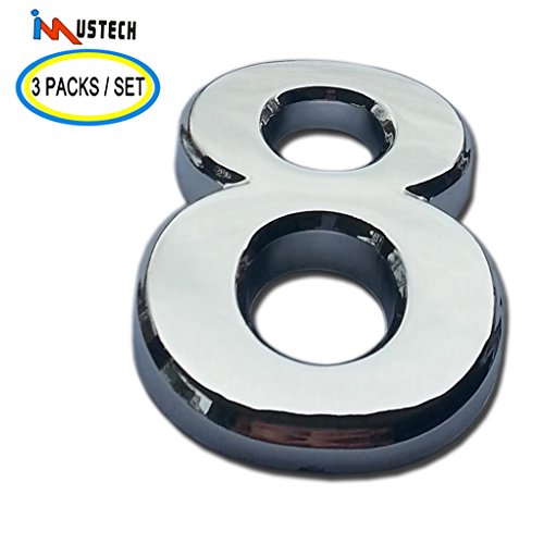3 Pcs of Number 8 iMustech 2 Inch Silver 3D Self-Stick Number with Reflective Silver Plating(ABS), for Door Number, Mailbox Number, Modern Hotel Number, Car Sticker