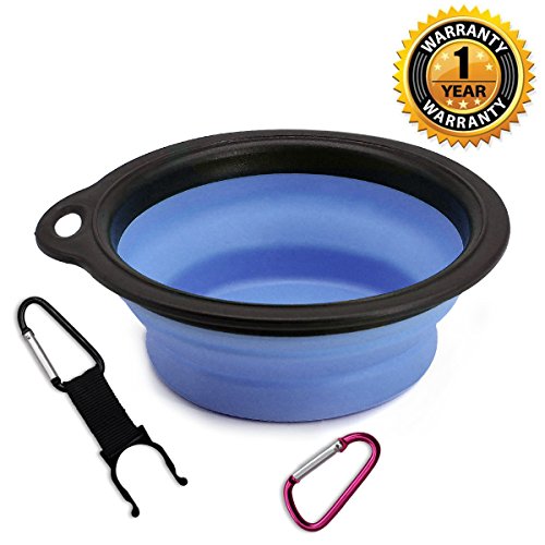 Petutu Collapsible Travel Dog Bowl - Holds Up To 12 Water Ounces (1.5 Cups, Blue)