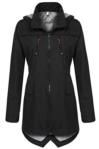 Meaneor Women's Hooded Zip Up Waterproof Trench Jacket Outdoor Women's Raincoat