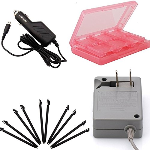 ZMZ AC Power Adapter Charger for Nintendo Dsi 2DS 3DS 3DS XL DSI LL + CAR CHARGER FOR 2DS DSI 3DS 3DS XL +10-Pack Touchscreen Stylus Pen +28 IN 1 GAME CARD CASE FOR DSI 2DS 3DS 3DS XL
