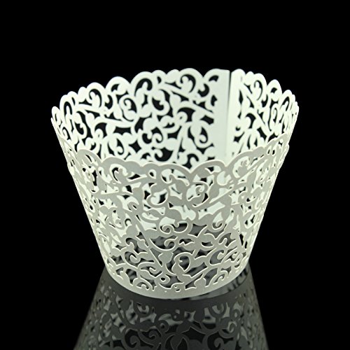 Bit Fly 108PCS Vintage Little Vine Laser Cut Cupcake Wrapper Muffin Case Cupcake Papper Cup Liner Birthday Wedding Cake Wrapper (Silver)